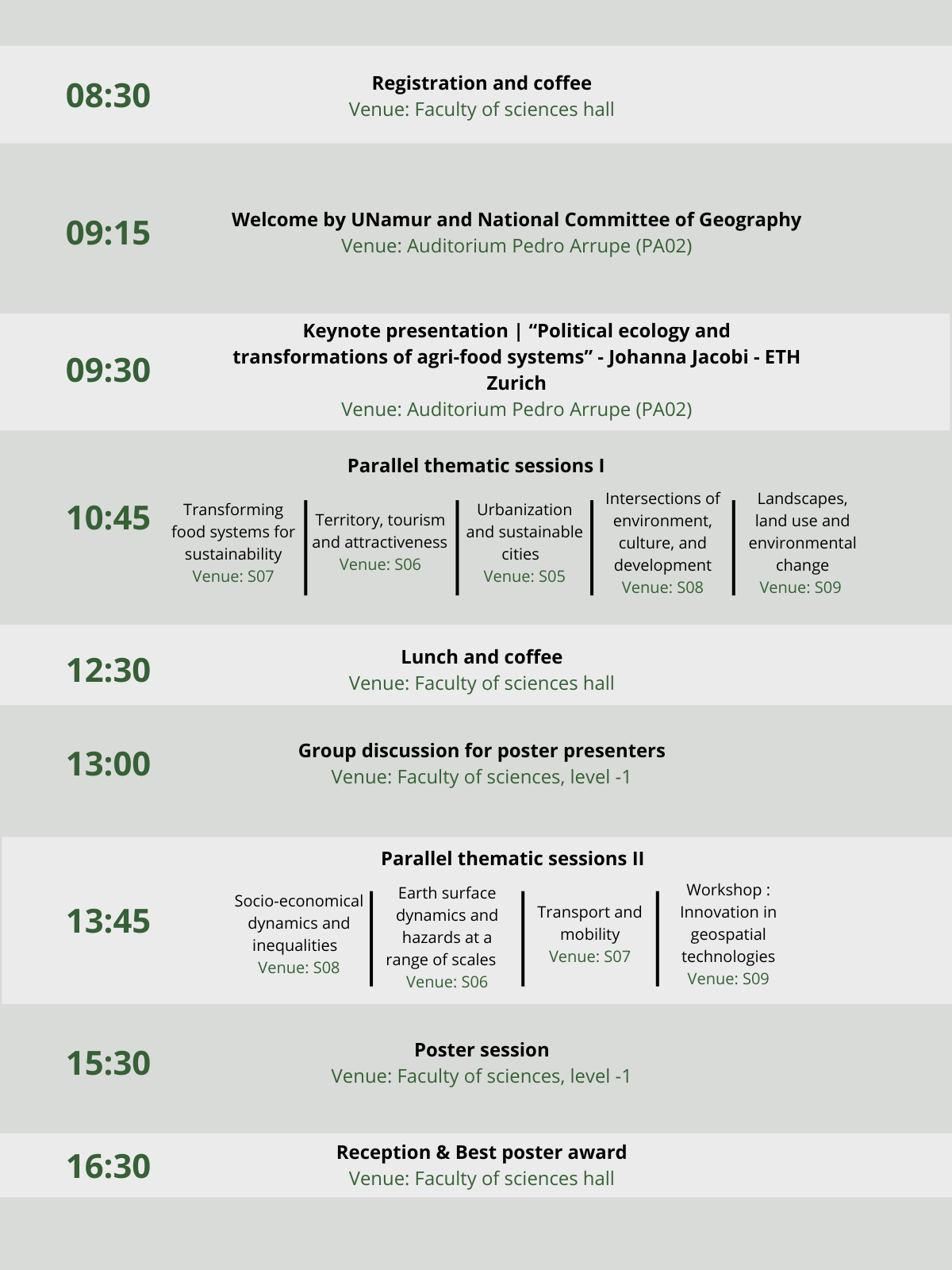 Programme https://blogdroit.unamur.be/en/belgian-geographers-day-2024/programme/index https://blogdroit.unamur.be/logo.png Programme Click on the picture to access the details for the parallel sessions and posters Programme of the day