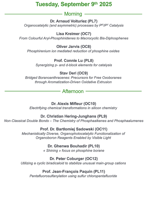 | 09:00 - 09:45 | Plenary Speaker - Muriel Hissler | Plenary Speaker - Arnaud Voituriez | Plenary Speaker - Alessandro Bismuto |