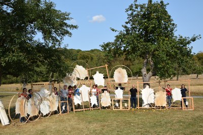 During the week, in an enthusiastic, peaceful and joyful atmosphere, a lot of practical hard work was carried out to transform raw skins into parchments. Together with a few lectures and a commented visit at the Archaeological Society of Namur for examining old manuscripts from St Hubert Abbey, this workshop enabled each participant to shape two parchments, one made from sheepskin, the other from goatskin.